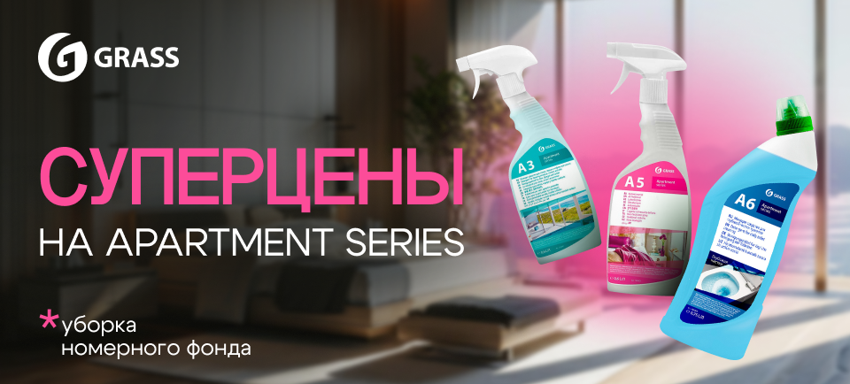 C 1 по 31 октября на Смартон действуют специальные цены на серию средств для уборки номерного фонда в отелях и гостиницах Apartment Series от бренда Grass