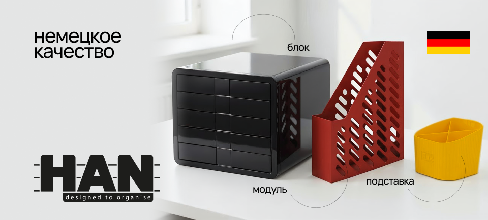 C 1 по 31 октября на Смартон действуют специальные цены на модули горизонтальные, модули вертикальные, подставки настольные, блоки настольные, картотеки и аксессуары, разделители документов от бренда Han