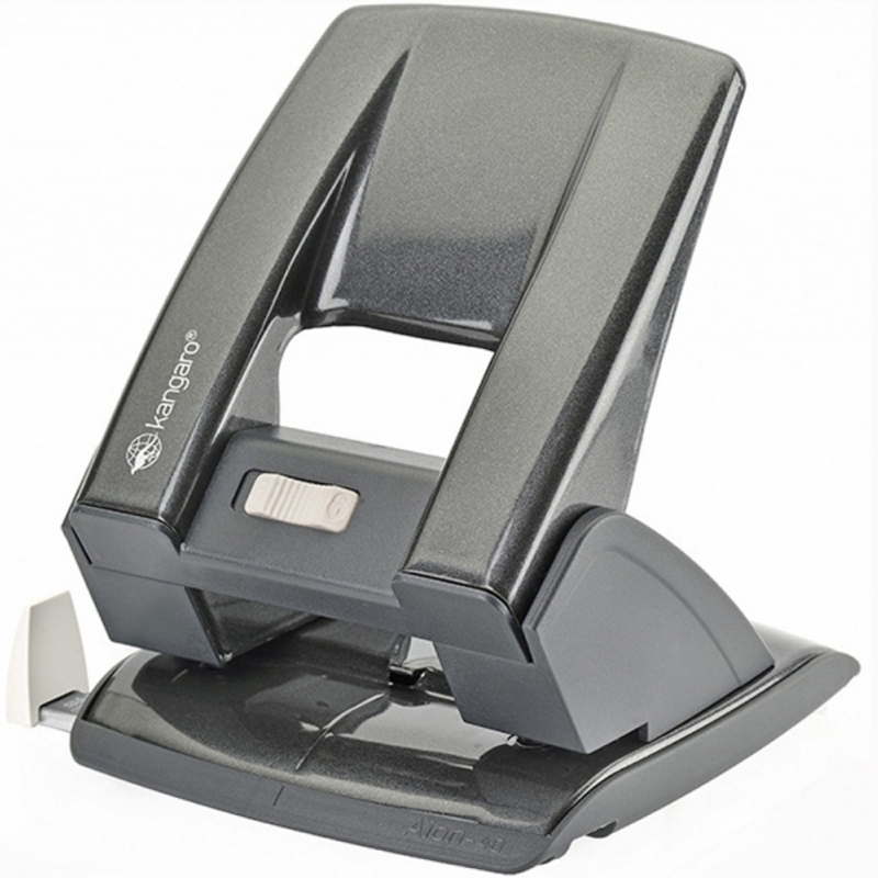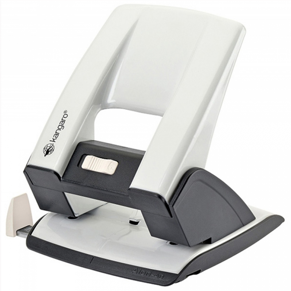 Метталический дырокол Kangaro AION-40 оснащен съемным пластиковым контейнером, предохраняющим поверхность стола от царапин. Пластмассовая выемка на резервуаре позволяет легко отделять и очищать его. В комплекте линейка деления на форматы: А4, А5, А6. Наличие системы блокировки в закрытом виде позволяет экономить рабочее пространство.